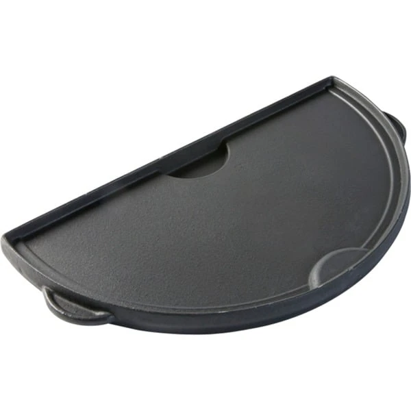 Die für das Big Green Egg XLarge passende halbrunde Wende-Grillplatte aus Gusseisen (Half Cast Iron Plancha Griddle) hat zwei verschiedene Seiten. Die geriffelte Seite eignet sich hervorragend für Fischfilets oder Toasts und auf der glatten Seite kann man Eier, Bacon, Speck, Pfannkuchen, sautierte Tomaten, Champignons oder einen Stapel American Pancakes backen. Da die Grillplatte aus Gusseisen nur die Hälfte des Rostes vom Big Green Egg in Beschlag nimmt, bleibt auch noch Platz zum Grillen übrig. Dank der halbrunden Grillplatte aus Gusseisen kann man ein leckeres Frühstück im Handumdrehen auf den Tisch zaubern.Art.-Nr.: 1597654