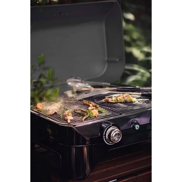 Der Campingaz Tischgrill Attitude 2100 LX verbindet eleganten urbanen Style mit professionellem Grillen, und hat dabei kompakte und transportable Maße. Die Zündung des Attitude Grills funktioniert bequem mit nur einem Knopfdruck. Der Grill bietet mit der Even Heat Technologie und dem langlebigen Blue Flame Brennersystem eine gleichmäßige Wärmeverteilung über die gesamte Grillfläche. Mit dem großen integrierten Thermometer kann man bequem die Temperatur im Inneren des Attitude BBQ überwachen und perfekte Ergebnisse beim indirekten Grillen erzielen. Unter dem eleganten Deckel verbirgt sich ein geteilter Grillrost mit Culinary Modular Einsatz, der vielseitige Grillmöglichkeiten bietet. Die verschiedenen Einsätze für das Culinary Modular System bringen das urbane Grillen auf das nächste Level, indem man einfach den inneren Ring des gusseisernen Grillrostes herausnimmt und ein Culinary Modular Zubehörteil, wie z.B. Pizzastein Bratpfanne, Plancha oder Paellapfanne (separat erhältlich) hineinlegt. Mit dem Culinary Modular Zubehör kann man seiner Kreativität von Pizza bis Paella frei entfalten. Mit dem patentierten Campingaz InstaClean System war die Reinigung nach dem Grillen noch nie so einfach. Der Attitude 2100 LX verfügt über eine frontseitige Fettauffangschale und ermöglicht es, die verchromten, spülmaschinengeeigneten Teile in weniger als 60 Sekunden schnell, einfach und sauber zu entnehmen.Art.-Nr.: 1654068