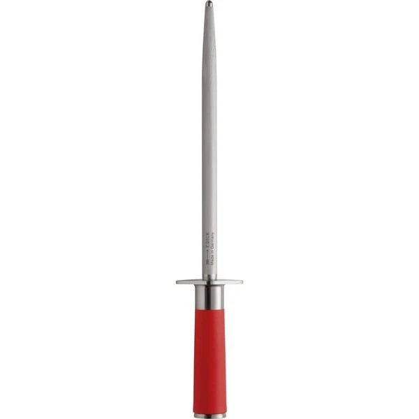 Über 140 Jahre Erfahrung in der Herstellung von Wetzstählen macht die Firma DICK zum absoluten Profi rund um das Thema Schärfen. Damit die hochwertigen Messer immer scharf bleiben, müssen sie regelmäßig mit einem Wetzstahl nachgeschärft werden. Denn scharfe Messer schneiden besser und leichter. Der Wetzstahl 71741250 der Serie Red Spirit mit seiner runden Klinge, dem Standardzug und dem unverwechselbaren roten Griff macht die beliebte Serie komplett. Die hochlegierte Klinge, die stärkere galvanische Beschichtung, die extreme Härte und genau definierte Oberfläche bieten höchste Qualität und lange Lebensdauer.Art.-Nr.: 1608264