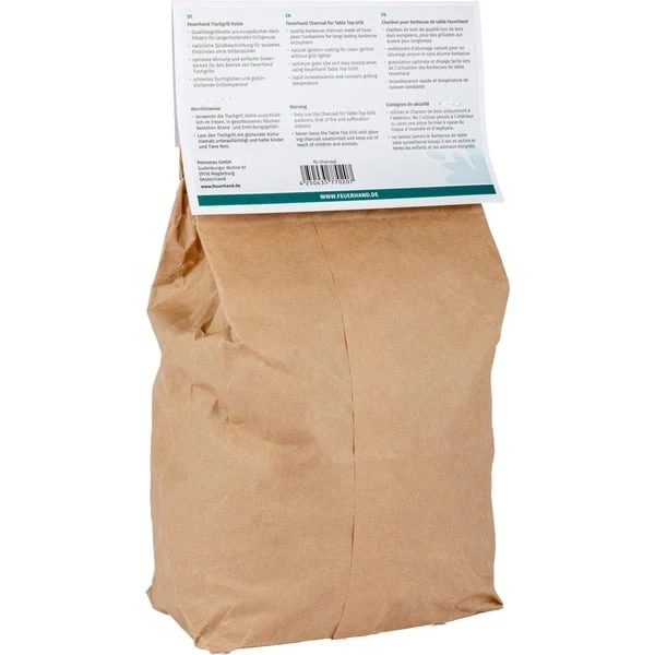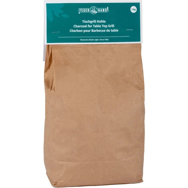 Die Feuerhand Tischgrill Kohle ist eine speziell für Feuerhand Tischgrills entwickelte Qualitätsgrillkohle, die echten Grillgenuss auf dem Balkon oder der Terrasse ermöglicht, eine ideale Basis für den Grillgenuss am Gartentisch. Hergestellt aus europäischen Harthölzern, bietet sie eine optimale Körnung und ist ganz einfach zu dosieren. Die in einem patentierten Verfahren aufgebrachte geschmacksneutrale Zündbeschichtung aus rein natürlichen Inhaltsstoffen gewährleistet sicheres und einfaches Anzünden, ganz ohne Grillanzünder. Dadurch lässt sie sich einfach mit einem Streichholz oder Stabfeuerzeug anzünden und die Hände bleiben dabei sauber. Die Kohle glüht schnell durch und erzeugt eine gleichbleibende Grilltemperatur für lang anhaltendes Grillvergnügen. Mit dem praktischen 1 kg Nachfüll-Pack viele entspannte Abende mit leckeren Grillsnacks, z.B. vom Feuerhand Tischgrill Tamber, gesichert. Mit ihm kann man mit nur einer Portion Tischgrill Kohle (ca. 140g) bis zu 1,5 Stunden direkt am Tisch grillen und genießen. In der Verpackung lässt sich die Tischgrill Kohle problemlos und ohne Qualitätsverlust lagern, da sie feuchtigkeitsresistent ist. Die geringen Aschereste, die die Tischgrill Kohle hinterlässt, können nach dem Abkühlen bedenkenlos im Restmüll entsorgt werden.Art.-Nr.: 1855420