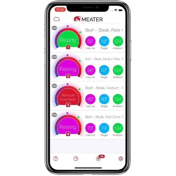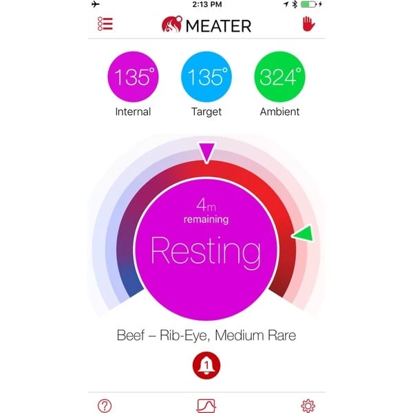 Der Meater Block bietet vier kabellose Fleischthermometer und den großen Block. Das Meater ist das erste wirklich drahtlose, smarte Fleischthermometer. Mit ihm holt man sich mehr Freiheit an Grill, Smoker oder in die Küche. Das drahtlose Thermometer wird einfach in das Fleisch gesteckt. Unabhängig von der Garmethode kann der Meater in einer Pfanne, einem Ofen, einem Grill oder einer Rotisserie verwendet werden. Er verfügt über zwei Sensoren, einen für die Kerntemperatur, bis zu 100°C, und einen für die Umgebungstemperatur bis zu 275°C. Der Meater lässt sich per Bluetooth 4.0 mit dem Smartphone, Tablet oder PC verbinden. Dank der kostenlosen App kann der Meater abschätzen, wie lange man das Essen garen muss, um perfekte Ergebnisse zu erzielen. Der komplette Garprozess kann auf diese Weise verfolgt werden. Die App gibt auch eine Einführung durch jeden Schritt des Garprozesses, um für perfekte und konsistente Ergebnisse zu sorgen. Es lassen sich außerdem zeit- und / oder temperaturbasierte Alarme / Benachrichtigungen manuell einstellen. Der Meater Block hat einen integrierten Repeater, der den Funkbereich auf bis zu 50 Meter erhöht. Dank des eingebauten Bildschirms ist eine Bedienung auch ohne Smartphone oder Tablet möglich. Art.-Nr.: 1524088