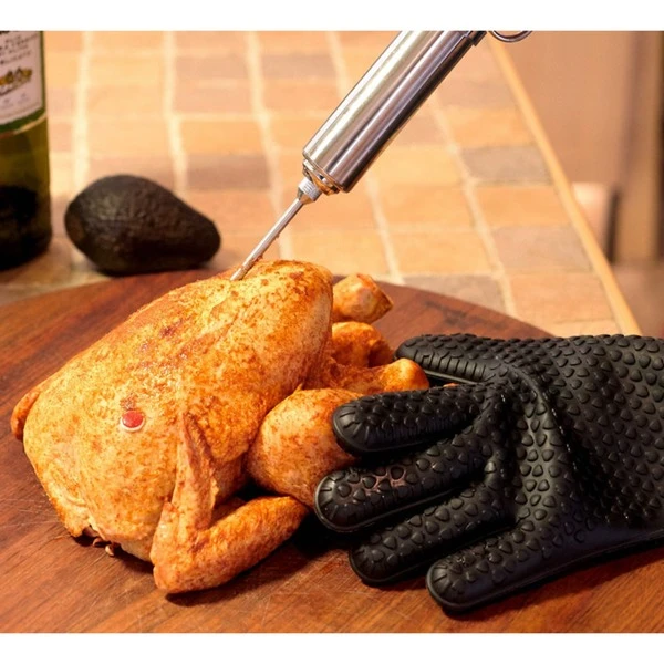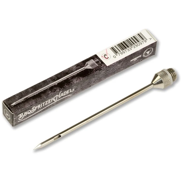 Die BBQ-Spritze No.1, Edelstahl-Bratenspritze von Moesta-BBQ ist eine Marinadenspritze, entwickelt um dem passionierten Griller das perfekte Tool an die Hand zu geben, um sein Fleisch von innen zu würzen. Ob Pulled Pork, Beef Brisket oder auch kleine Fleischstücke wie Schweinefilet, Hühnerbrust ode Fisch können jetzt mit einer Injektion versehen werden. Eine Injektionsspritze wird verwendet, um Grillfleisch oder andere Lebensmittel von innen zu würzen. Auch beim Pökeln ist eine Spritze sinnvoll. Gerade bei großen Fleischstücken und Braten kann es vorkommen, dass sie trocken werden, wenn man mit der Kerntemperatur zu hoch geht. Daher gehört diese Spritze in jedes gute Grill-Equipment. Hier hat man alles was man braucht in einer hochwertigen Box, und nichts fliegt lose umher. Alle Nadeln haben unterschiedliche Auslässe an den Spitzen für unterschiedliche Einsatzzwecke: 1 Nadel 15cm lang / 5mm Durchmesser mit 12 seitlich angebrachten Löchern (4 Reihen zu je 3 Löchern), 1 Nadel 15cm lang / 5mm Durchmesser mit abgeschrägtem Auslass an der Spitze, Zusatznadel A: 11cm lang / 2,8mm Durchmesser mit abgeschrägtem Auslass an der Spitze, Zusatznadel B: 11cm lang / 2,8mm Durchmesser mit 2 seitlich runden Löchern, Zusatznadel C: 11cm lang / 2,8mm Durchmesser mit 2 seitlich versetzten Lang-Löchern, dazu gibt es 2 Silikon-Ersatzdichtungen für den Kolben, 2 Silikon-Ersatzdichtungen für die Nadeln und eine Bedienungsanleitung mit Rezepten. Alle Teile, die mit Fleisch oder Marinade in Berührung kommen, sind aus Edelstahl 304 / 1.4301 / V2A gefertigt.Art.-Nr.: 1516020
