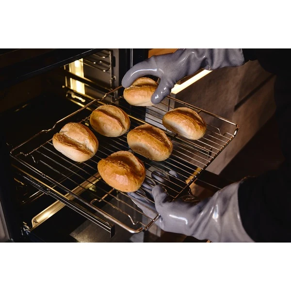 Die HeatPro Hitzehandschuhe von Moesta BBQ sind die perfekte Lösung für jeden, der gerne kocht, backt oder grillt. Sie sind aus hochwertigem und hitzebeständigem flüssigem Silikon gefertigt, einem der fortschrittlichsten Materialien für Ofenhandschuhe auf dem Markt, und bieten eine bequeme Passform sowie hervorragenden Halt, sogar auf nassen oder öligen Oberflächen. Das flüssige Silikon läuft um die Außenseite einer 3D-Handform herum, um die Handschuhe mit den biegsamen Fingern zu formen, die in Textur und Design weicher und formbarer sind als die steifen normalen Silikonhandschuhe, die mit einer 2D-Form hergestellt werden und die Form der Handschuhe begrenzen. Die HeatPro Hitzehandschuhe von Moesta BBQ können Temperaturen von bis zu 250°C standhalten und kurzzeitig sogar bis zu 300°C widerstehen. Mit ihrer rutschfesten Oberfläche und der flexiblen Passform sind diese Handschuhe sehr bequem und einfach zu tragen. Sie sind übrigens BPA- und latexfrei, also ideal für Menschen mit empfindlicher Haut. Ein weiterer Vorteil der HeatPro Hitzehandschuhe ist, dass sie in der Maschine waschbar sind. Das erleichtert die Reinigung und sorgt dafür, dass sie immer sauber und hygienisch sind. Endlich kann man mit den HeatPro Hitzehandschuhen auch Fleisch oder andere Lebensmittel auf dem Grill oder im Backofen direkt anfassen und problemlos wenden, ohne sich zu verbrennen. Egal, ob man den heißen Topf vom Herd nehmen oder das Backblech aus dem Ofen holen möchte, mit dem Paar HeatPro Hitzehandschuhe kann man die Speisen und Gerichte sicher und bequem transportieren.Art.-Nr.: 1919603