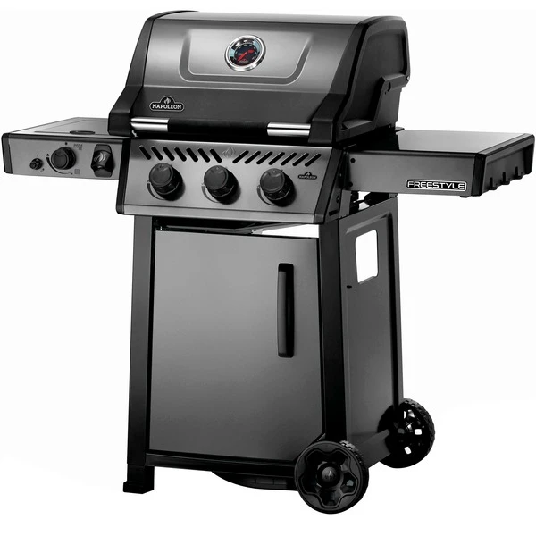 Der Napoleon Freestyle 365 SIB Graphit ist ein kompakter Gasgrill mit SIZZLE ZONE, erstklassigen Funktionen und unschlagbarem Preis-Leistungsverhältnis. Der Flammenstrahl des JETFIRE Zündsystems zündet die Hauptbrenner schnell, einfach und zuverlässig. Die Iconic Wave-Grillroste aus Gusseisen und die emaillierten Flammenschutzbleche ermöglichen eine gleichmäßige Hitze-Verteilung und ein perfektes Anbraten. Die Porzellanbeschichtung schützt sie dabei vor Rost. Der langlebige Feuerkasten aus Aluminiumguss reflektiert die Hitze des Grills und erzeugt so eine konvektive, backofenähnliche Umgebung und hervorragende Grillergebnisse. Die Temperatur der drei Edelstahlbrenner kann mit den ergonomischen Bedienknöpfen präzise gesteuert und über das integrierte Thermometer einfach kontrolliert werden. Die klassische Edelstahlblende und der Carbonfarbton verleihen dem leicht ablesbaren Thermometer einen stylischen Retrolook. Bei dem Freestyle SIB-Modell verbirgt sich in der linken Seitenablage außerdem der legendäre SIZZLE ZONE Infrarotbrenner. Dieser Hochtemperatur-Brenner verwöhnt das Grillgut bei bis zu 800°C mit köstlichen Röstaromen für Perfektion wie im Steakhaus, und ist natürlich auch perfekt für Soßen, Beilagen, Wok- oder Pfannengerichte geeignet. Die schöne Graphit-Porzellanbeschichtung schützt den Deckel vor Abnutzung, Wettereinflüssen und Fingerabdrücken. Der Soft-Touch-Griff mit weicher Oberfläche ist wärmeabweisend und sorgt beim Öffnen und Schließen der Grillhaube für eine angenehme Griffigkeit. Auch die Reinigung des Gasgrills Freestyle 365 SIB Graphit fällt anschließend dank der seitlich zu entnehmenden Fettauffangschale ganz leicht. Mit den beiden robusten Rollen kann der Grill leicht an jeden gewünschten Ort geschoben werden, und der geschlossene Unterschrank schützt die Gasflasche und den Wagen vor Umwelteinflüssen. Mit einer festen und einer einfach ausklappbaren Seitenablagen mit Aufhängern für Grillbesteck sowie einem Flaschenöffner ist der Freestyle für jede Gartenparty umfassend ausgestattet.Art.-Nr.: 100000126