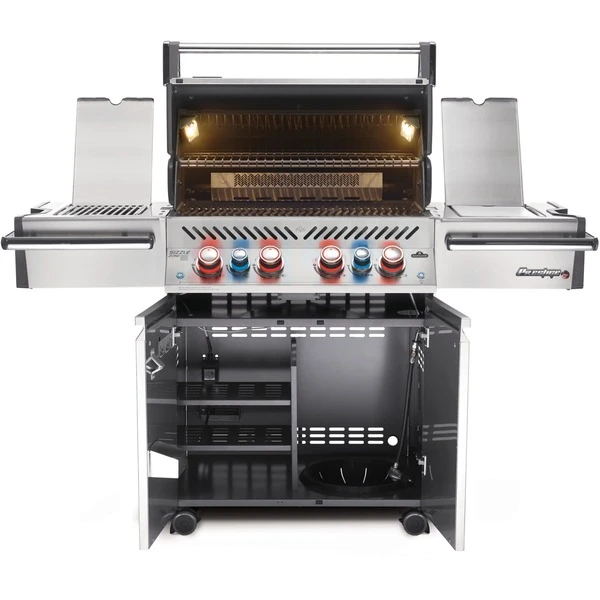 Der Napoleon Gasgrill Prestige Pro 500 vereint hochwertigste Materialien, innovative Brennertechnologien, zeitloses Design und komfortable Features. Er begeistert mit SAFETY GLOW Drehreglern, der LIFT EASE Rollhaube, einem Infrarot-Heckbrenner für saftige Drehspieß-Gerichte, einer Rotisserie, der innovativen Infrarot SIZZLE ZONE mit höhenverstellbarem Edelstahl-Grillrost und vielem mehr. Steaks, Braten, Drehspieß und andere herkömmliche Grillgerichte finden hier ihre jeweils optimale Grillzone. Der keramische Infrarotbrenner der SIZZLE ZONE erzeugt Temperaturen von bis zu 800°C, womit das perfekte Steak und knackiges Gemüse gegrillt werden können. In der robusten und langlebigen Aluguss-Grillkammer fungieren Flammenschutzeinsätze gleichzeitig als zweistufige Aromaschienen, die abtropfende Fleischsäfte in Aromaspender für das Grillgut verwandeln. Auf der 71 x 46cm großen Hauptgrillfläche sorgen die 9,5mm dicken WAVE Edelstahl-Stabgrillroste für das typische, beliebte Napoleon-Branding. Der abnehmbare Edelstahl-Warmhalterost bietet eine zusätzliche Grill- und Garfläche. Die beidseitigen Ablagen halten nebst Seitenbrenner und Zubereitungsfläche auch ein Fach für kühle Getränke mittels Crushed Ice und ein integriertes Schneidebrett, verchromte Handtuchhalter, Besteckhaken und Gewürzablagen bereit. So sind Grillzange und anderes Grillzubehör stets zur Hand. Und wenn das Grillvergnügen mal etwas länger dauert, ermöglichen die neuen SAFETY GLOW Drehregler mit integrierter Hintergrundbeleuchtung und Farbwechsel (ändert sich von blau auf rot, wenn Gas strömt) auch bei Dunkelheit eine präzise Bedienung. Der Prestige Pro 500 ist jetzt mit einem Bewegungssensor ausgestattet, so dass die SAFETY GLOW Regler bei Bewegung bzw. Annäherung zum Grill aufleuchten und das Napoleon Logo per LED auf den Boden projiziert wird. Die platzsparende LIFT-EASE Rollhaube mit integriertem ACCU PROBE Thermometer basiert auf Schwerpunkt-Technologie, wodurch sie kinderleicht anzuheben ist und nicht über die Rückseite des Grills herausragt.Art.-Nr.: 1591484