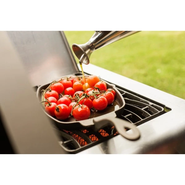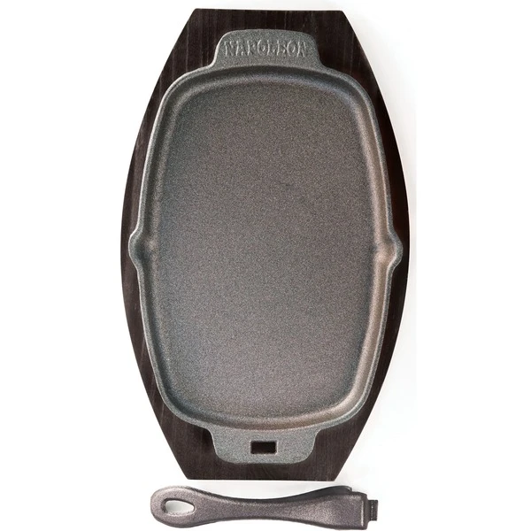Die Napoleon PRO Gusseisen-Grill- und Bratpfanne 56008 ist das perfekte Modell für Einsteiger und Profis. Ob am Grillrost, am Seitenbrenner oder am Küchenherd, diese Gusseisen-Pfanne macht überall eine perfekte Figur. Während des Grillens oder Bratens wird einfach der Griff ausgehängt. So bleibt dieser schön kühl und das Pfannengericht kann professionell samt Untersetzer serviert werden. Professionell eingebranntes Gusseisen überdauert Generationen. Diese Grillpfanne kann man auch ganz einfach selbst einbrennen: Dazu einfach waschen, mit einer dünnen Schicht pflanzlichen Fetts beschichten und bei ca 180°C in einen eine Stunde vorgeheizten Grill oder Ofen stellen. Dieser Vorgang sorgt für eine nicht-haftende Oberfläche, sodass man jahrelang Freude an der Gusseisen-Pfanne hat. Art.-Nr.: 1404520