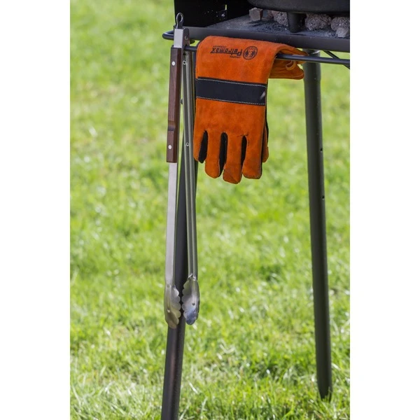 Der Petromax Feuertopf Tisch fe45 ermöglicht Draußen-Kochen im großen Stil. Er bietet eine sichere Stand- und Kochfläche für Feuertöpfe in angenehmer Arbeitshöhe von 87cm. Auf dem belastbaren Stahltisch finden je nach Größe mehrere Feuertöpfe oder Grillroste Platz. Der großzügig bemessene Windschutz ermöglicht auch im Freien energie- und kohleeffizient zu kochen. Die vier Standbeine können alternativ auch abgebaut und der Tisch auf eine beliebige, hitzeresistente Unterlage gestellt werden. Vorn und an den Seiten bieten Bügel Platz zum Aufhängen von Kohlezange, Grillhandschuhen und Co. Zum Säubern lassen sich Asche und Kohlereste einfach durch eine Aussparung im vorderen Bereich der Arbeitsfläche ausfegen.Art.-Nr.: 1533663