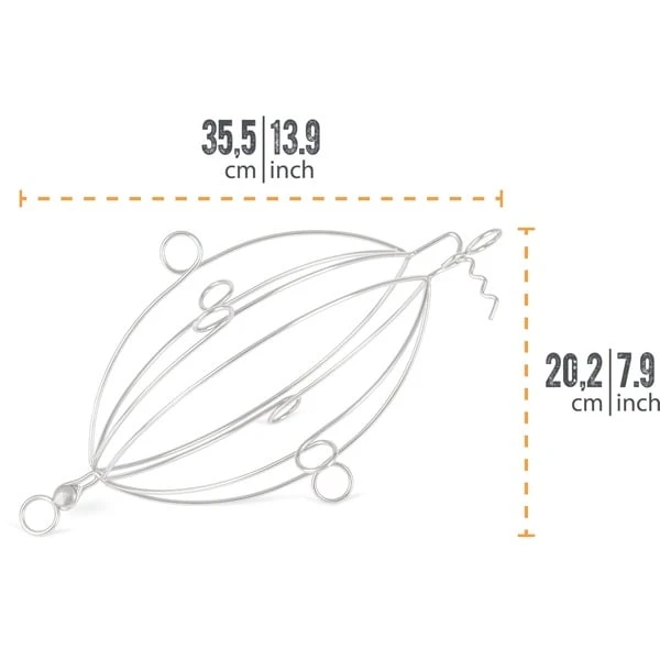 | Bestehend aus | 1x Grillkorb, 1x Kette mit Drehwirbel, 2x S-Haken | ||