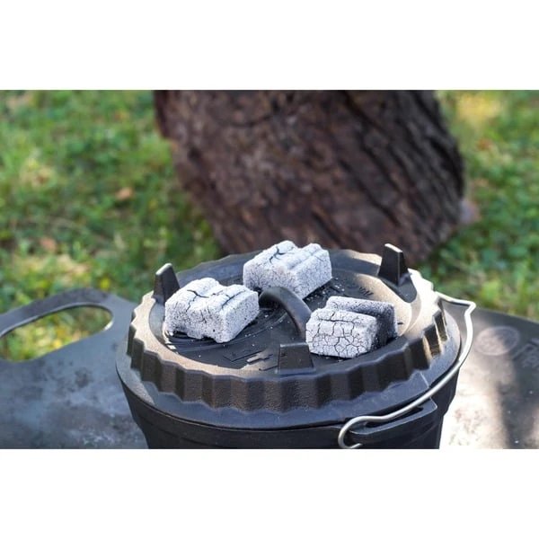 Mit der gusseisernen Gugelhupfform gf1 von Petromax backt man nicht nur leckeren Kuchen, auch frisches Brot und Aufläufe gelingen in der klassischen Kranzform ideal. Der Gussdeckel der Form vereint mehrere Anwendungsmöglichkeiten: Er ermöglicht das Backen mit Oberhitze in der Draußen-Küche und verfügt umgedreht über eine Tortenbodenfunktion. Die gusseiserne Gugelhupfform mit dem praktischen Tragehenkel aus Edelstahl zum Aufhängen ist hervorragend für das Backen und Kochen über offenem Feuer geeignet, kann aber auch problemlos für das Backen im Backofen verwendet werden. Das Gusseisen der Gugelhupfform stellt sicher, dass die Wärme effizient gespeichert und gleichmäßig an das Backgut weitergeleitet wird. Außerdem ist die Oberfläche bereits vorbehandelt (seasoned finished) und macht somit ein erstmaliges Einbrennen unnötig. Auf dem Deckel der Gugelhupfform lassen sich dank erhöhtem Rand Glut oder Holzkohle einfach platzieren. Auf diese Weise werden Kuchen, Brot oder Auflauf gleichmäßig gar. Doch die Form bietet noch mehr. Der Deckel mit Tortenbodenform kann umgedreht zum Backen von Tortenböden sowie für leckere Quiches und Tartes genutzt werden. Auf seine drei Füße gestellt, dient er zudem als Pfanne oder als praktische Servierplatte.Art.-Nr.: 1533728