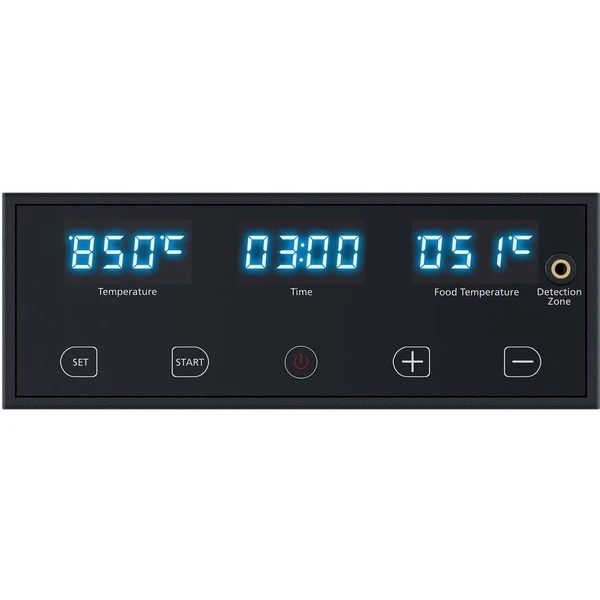 | Zubehör | vorhanden | Edelstahl-Grillplatte 2mm, Edelstahl-Fettauffangschale, Edelstahl-Nachgarschale, Edelstahl-Pfannenausheber, elektronische Kerntemperatur-Messsonde | |