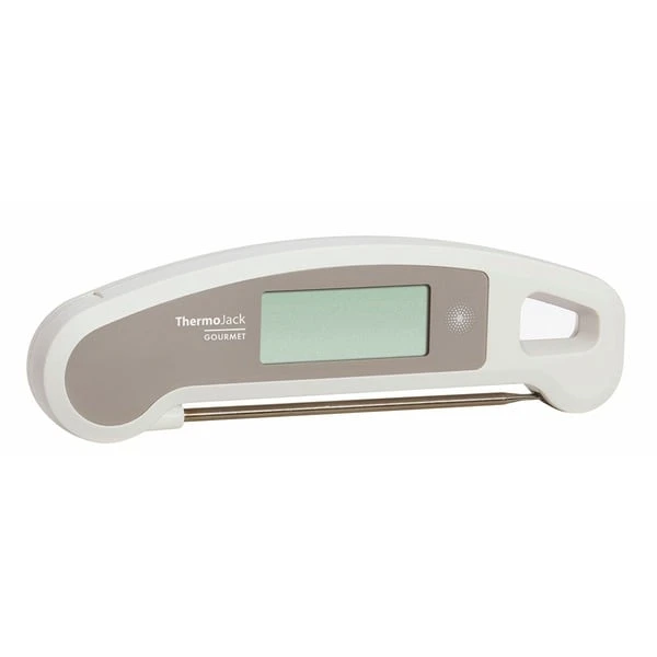 Das TFA Thermo Jack 30.1060 ist ein professionelles Klappthermometer und eignet sich ideal für die unkomplizierte Temperaturmessung in Ihrer Küche. Die Kontrolle der Kerntemperatur beim Grillen oder Braten, die temperaturgenaue Zubereitung von Leckereien aus Zucker und Schokolade, das Einkochen von Marmelade und die Überprüfung der Trinktemperatur von Wein und Getränken, das sind mögliche Einsatzbereiche des Thermo Jack Gourmet Thermometers. Nahrungsmittel jeglicher Art können mit dem handlichen Thermometer schnell, exakt und mühelos gemessen werden. Den Fühler ausklappen, einstechen und innerhalb von drei Sekunden liefert das Gerät die exakte Temperatur. Das beleuchtete Flip-Display dreht sich automatisch mit, so dass auch Linkshänder die Temperatur immer bestens ablesen können. Das Gerät ist strahlwassergeschützt und kann nach Gebrauch unter fließendem Wasser gereinigt werden. Die antibakterielle Beschichtung macht es besonders hygienisch.Art.-Nr.: 1858874