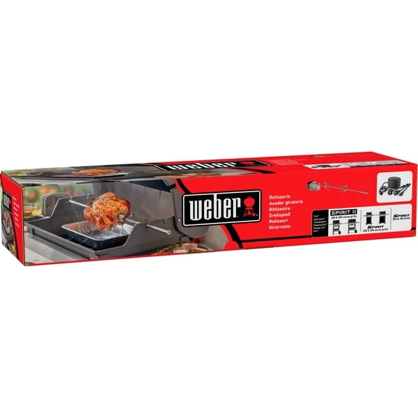 Der Weber Drehspieß 8519 eignet sich für alle neuen Spirit Modelle. Durch das langsame und gleichmäßige Drehen des Grillguts wird es von allen Seiten gleichmäßig gebraten und kann langsam auf den Punkt garen. Durch die Hitze verteilen sich das Fett und der Bratensaft im Fleisch, das sorgt für leckere und saftige Gerichte. Mit dem Drehspieß 8519 zaubert man perfekte Schmor- und Rollbraten, knusprige Hähnchen und vieles mehr. Art.-Nr.: 1399983