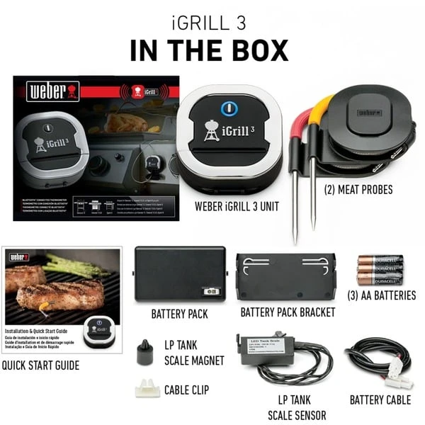 Dieses vielseitige und innovative Thermometer verbindet sich via Bluetooth mit der kostenlosen Weber iGrill-App und misst sowohl die Kern- als auch die Temperatur in der Grillkammer. Man hat die freie Wahl – voreingestellte Werte nutzen oder eigene Werte festlegen. Das Thermometer enthält 2 Messfühler und ist für bis zu vier Fühler geeignet. Neben der Bluetooth Verbindung zum Smartphone oder zum Tablet besteht nun auch die Möglichkeit des Social Networking. Innerhalb der iGrill-App haben Nutzer nun auch die Möglichkeit, ihre Grillerlebnisse z.B. durch das Veröffentlichen von Fotos zu teilen. Auch der eigene Standort kann markiert und auf einer Weltansicht angezeigt werden. Jedes iGrill Thermometer kann durch die Magnethalterung am Gehäuse bequem am Grill befestigt werden. Mit dem iGrill 3 ist es sogar möglich, die Beleuchtung am Genesis II LX aus der Ferne zu steuern. Außerdem ist das iGrill 3 Thermometer wetterbeständig und kann daher am Grill verbleiben.Art.-Nr.: 1303167