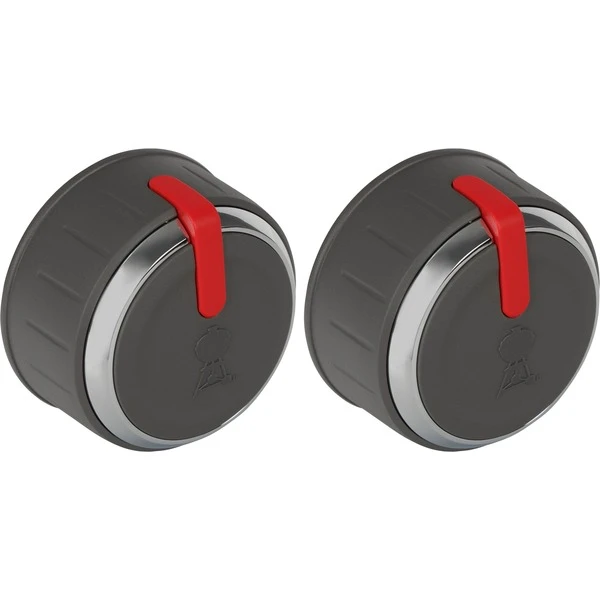 Die beiden Drehknöpfe zur Temperaturregelung 66048 sind als Original-Ersatzteil erhältlich. Die dunkelgrauen Knöpfe mit Chrom-Ring und rotem Positions-Zeiger passen für die Weber Gasgrills der Serie Genesis II E / SE.Art.-Nr.: 1579446