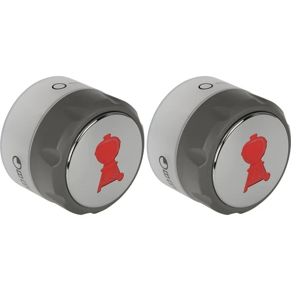 Die beiden beleuchteten Drehknöpfe zur Temperaturregelung 91540 sind als Original-Ersatzteil erhältlich. Die dunkelgrauen Knöpfe mit lichtdurchlässiger Blende, Chrom-Finish und rotem Weber-Logo passen für die Weber Gasgrills der Serie Summit, ab Bj. 2012.Art.-Nr.: 1579495